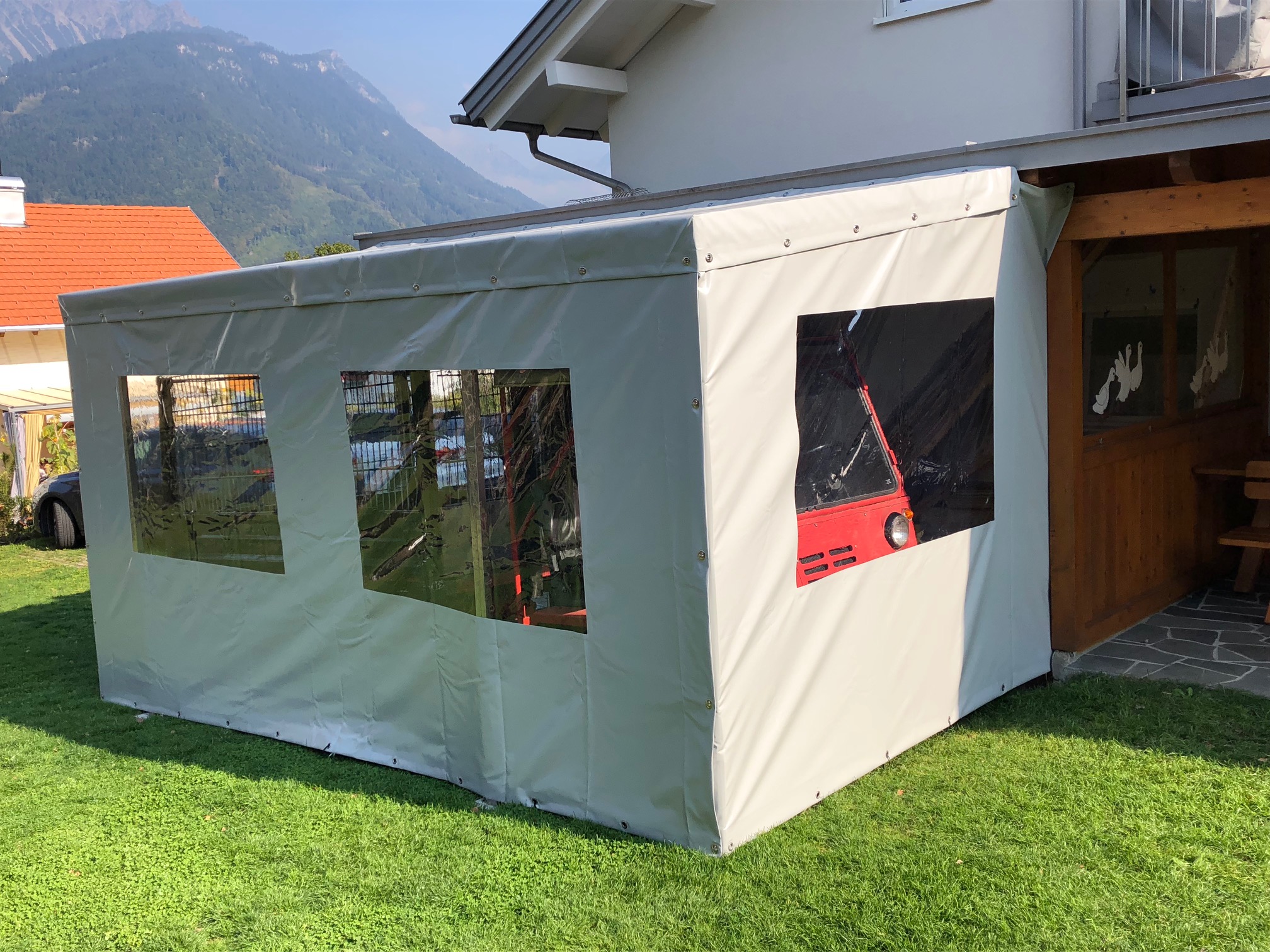 Schützen Sie Ihr Fahrzeug zuverlässig vor Regen, Wind und Schmutz, während integrierte Fenster für natürliches Licht und eine helle Atmosphäre sorgen.