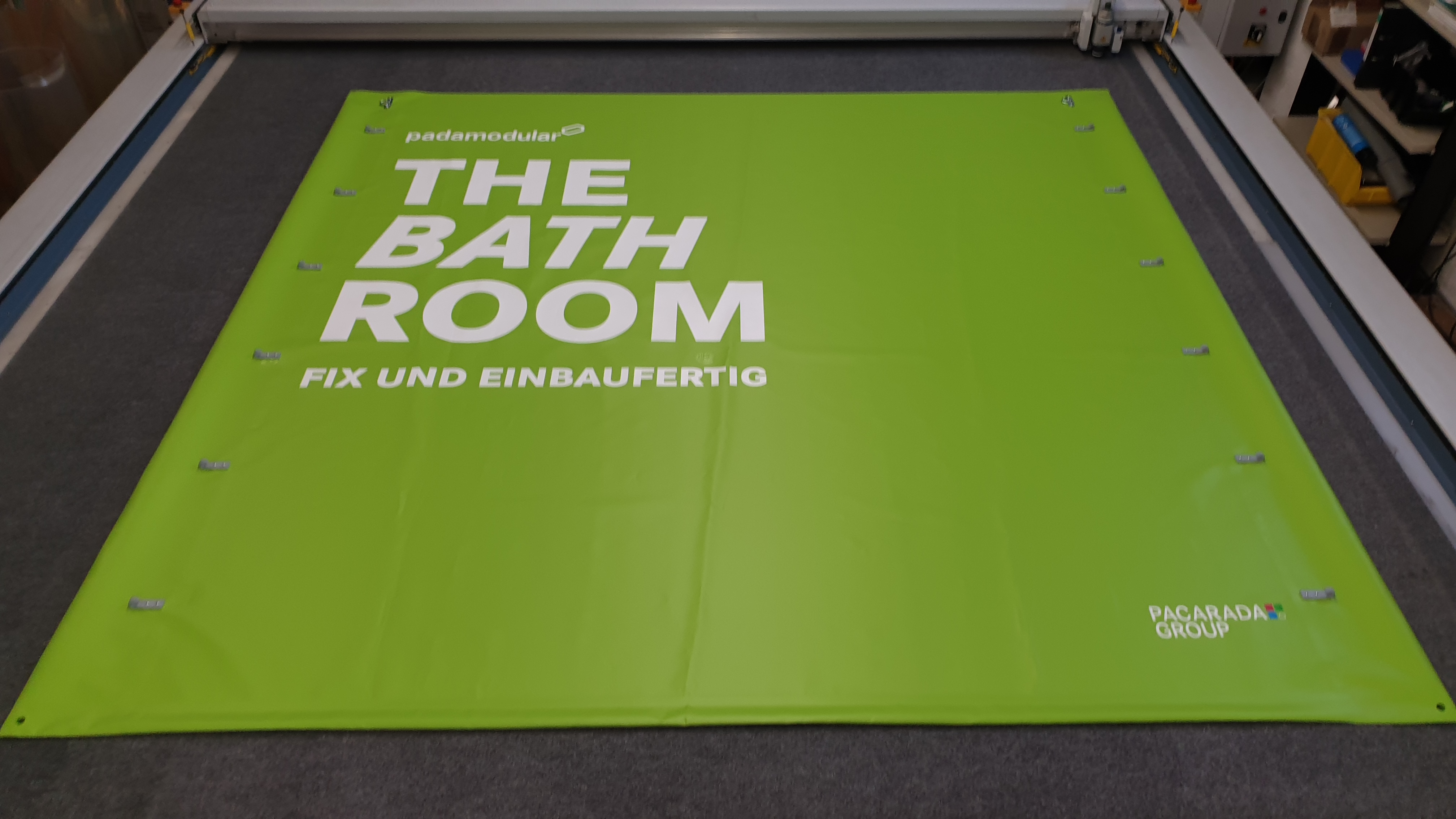 Gerne bedrucken wir Ihre PVC-Plache mit Ihrem Logo oder Slogan.