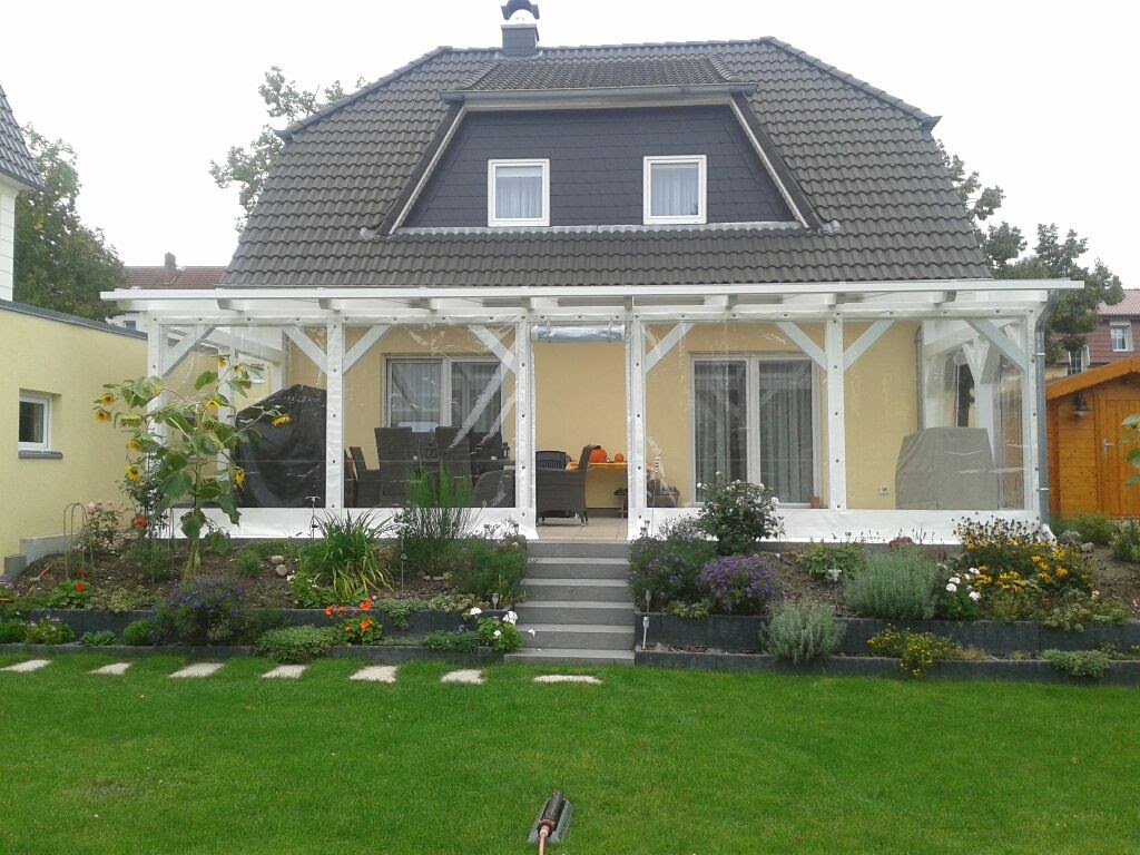 Ein besonderes Highlight ist die Möglichkeit, transparente Fensterflächen oder aufrollbare Türen in die Terrassenplane zu integrieren. Damit schaffen Sie eine lichtdurchflutete, geschützte Atmosphäre, ohne auf den freien Blick in den Garten verzichten zu müssen.